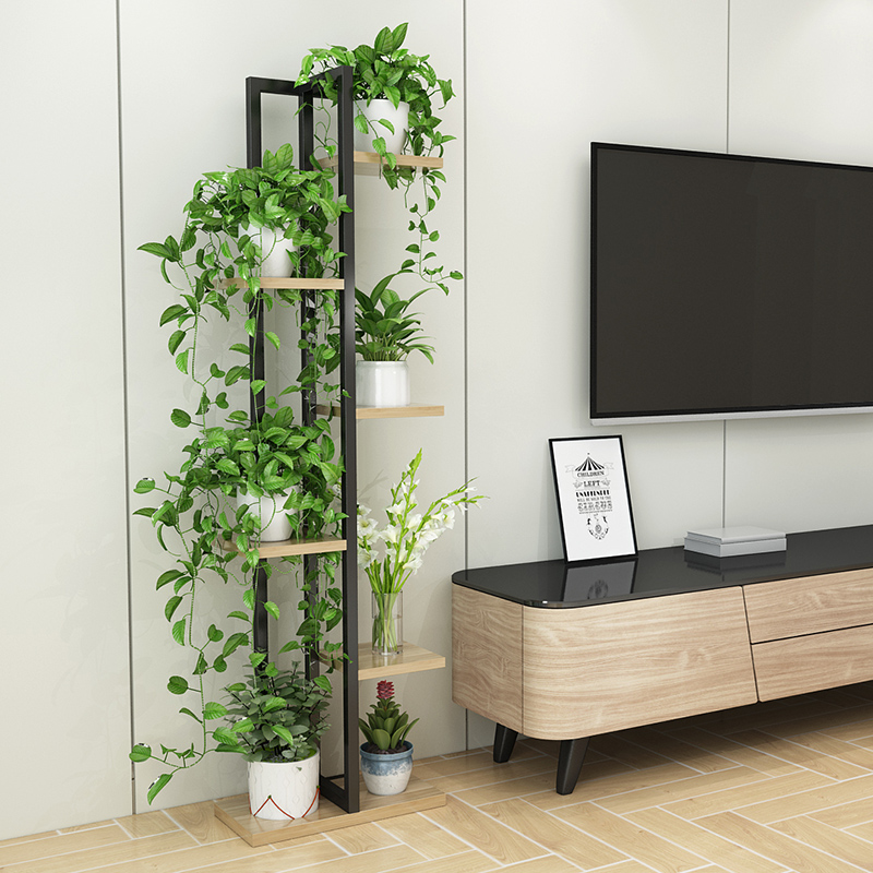Versatile gold Ge chandelia flower shelf Living room Bedroom steel wood flower shelf Multi-floor indoor special price iron art flower shelf to ground floor