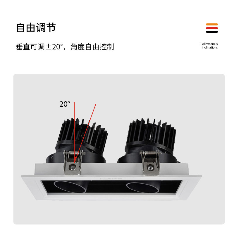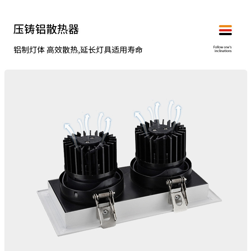 Sidon LED spot light Double head cob grille dare light Embedded clothing store background wall living room light CES801N-L