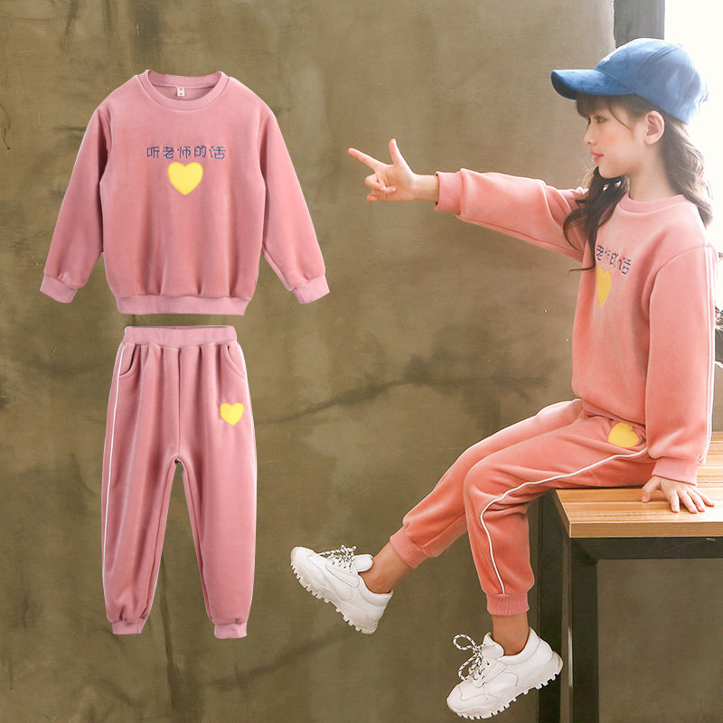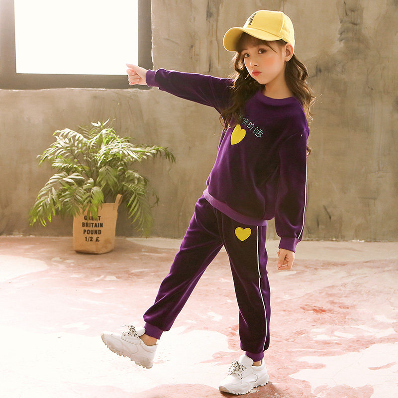Girl Nets Red Suit Foreign Pie Trendy Autumn Clothing 2020 New Women's Korean Version Golden Velvet Sports Two Suits Spring Autumn Tide