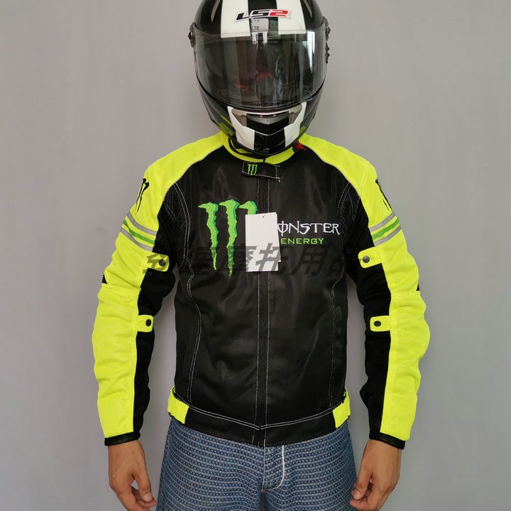 Summer breathable thin riding suit men's motorcycle motorcycle jacket racing suit anti-fall fat man plus size fluorescent green