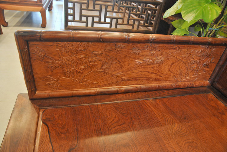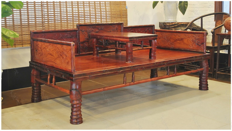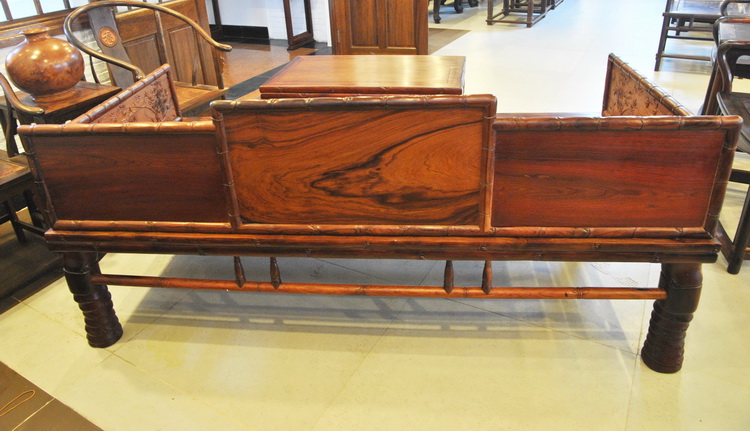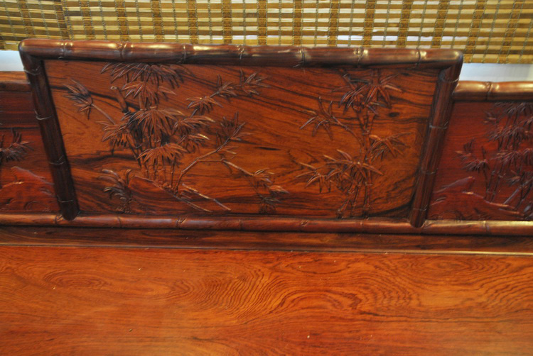 Mahogany Furniture Laos Red Rosewood Bari Rosewood Flower Branch Bamboo Arhat Bed Two-Piece Set (Spot B1309)