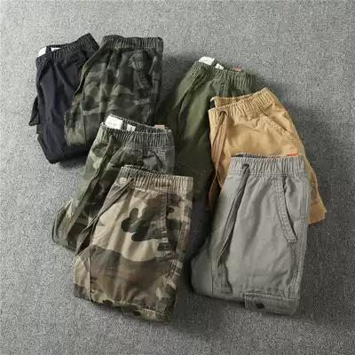 European and American retro men's trend slim-fit multi-pocket tooling camouflage casual trousers autumn and winter cotton thick jogging pants