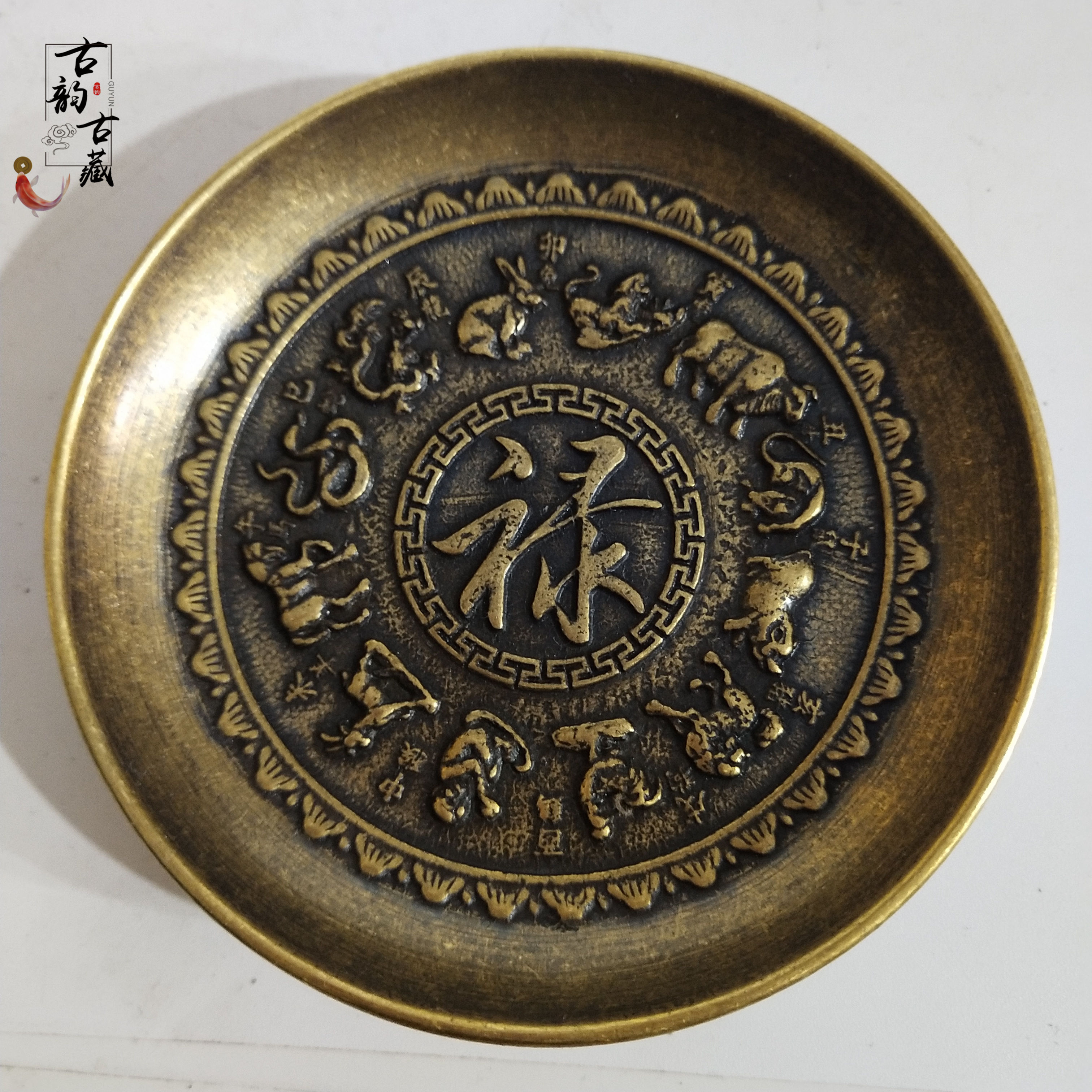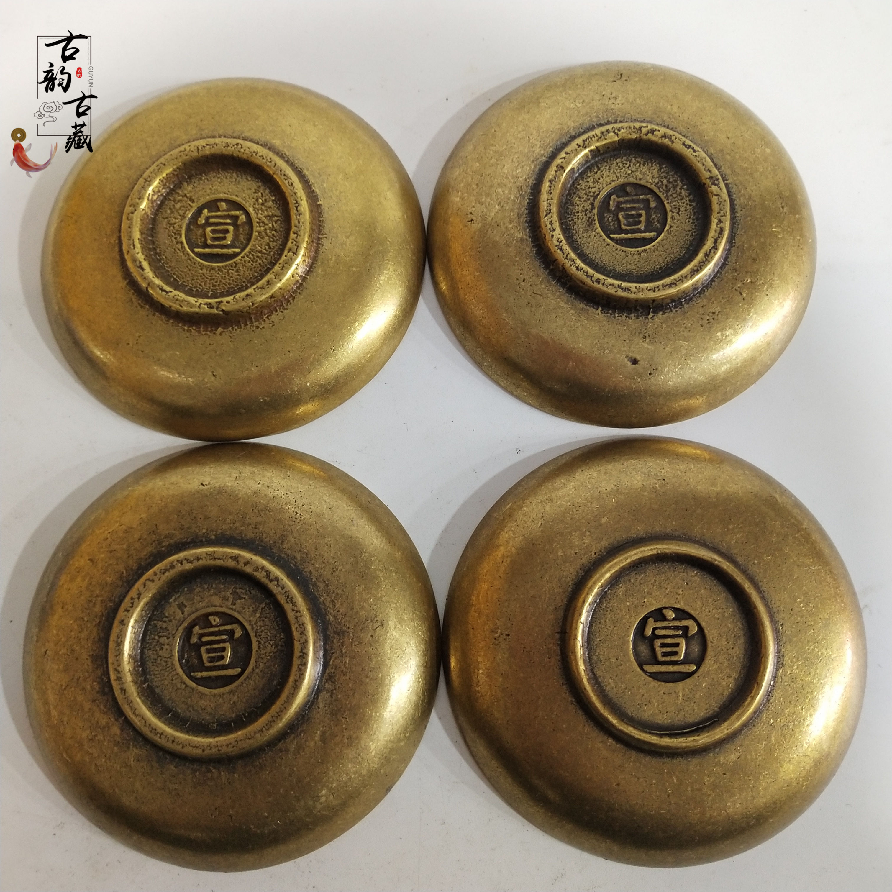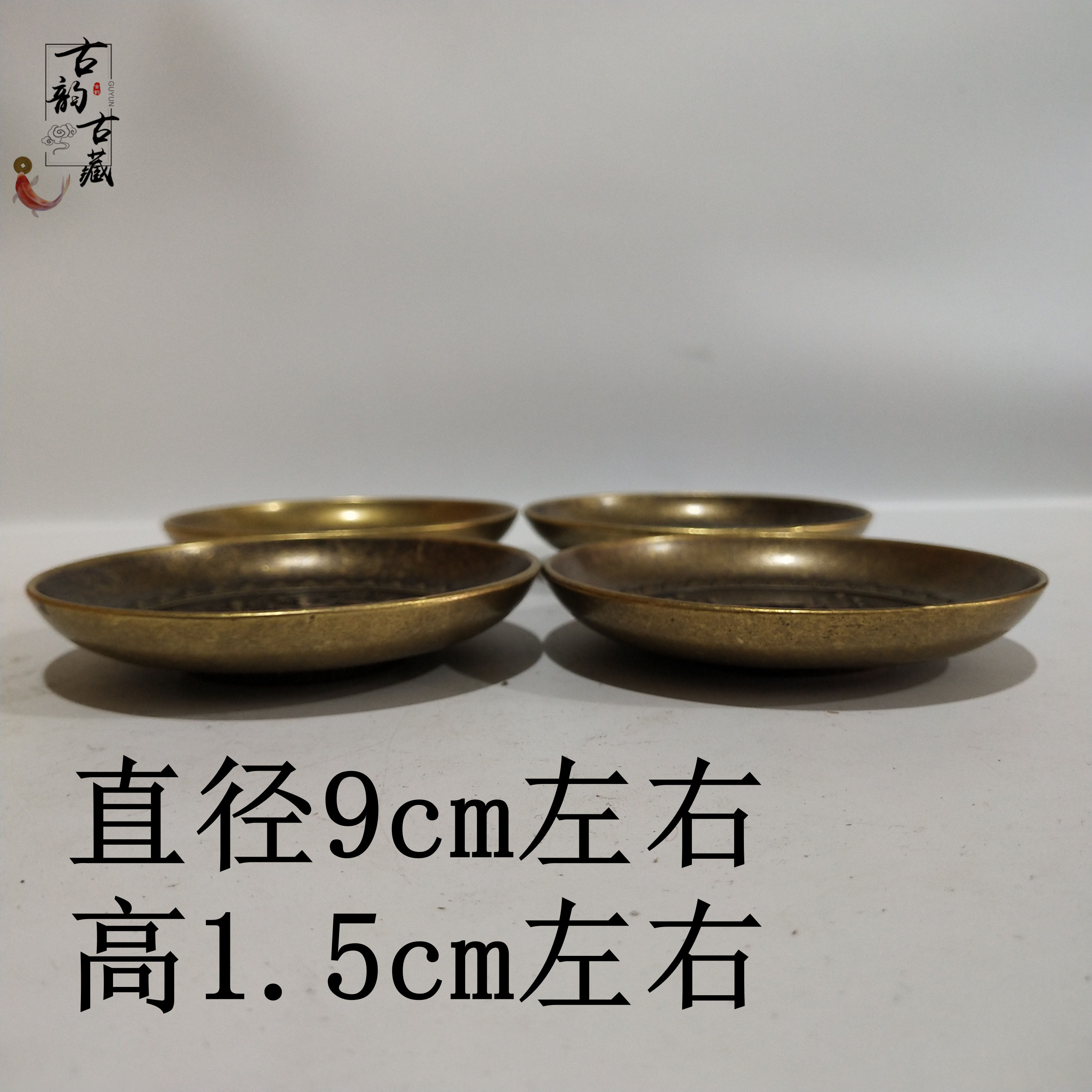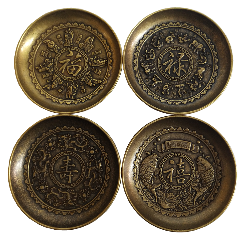 Antique antique Xuan bottom Fu Lu Shouxi small copper plate ornaments A set of retro copper plates Household coasters tea tray craft gift ornaments