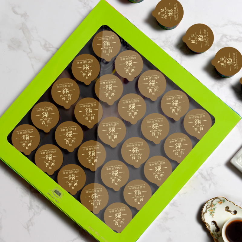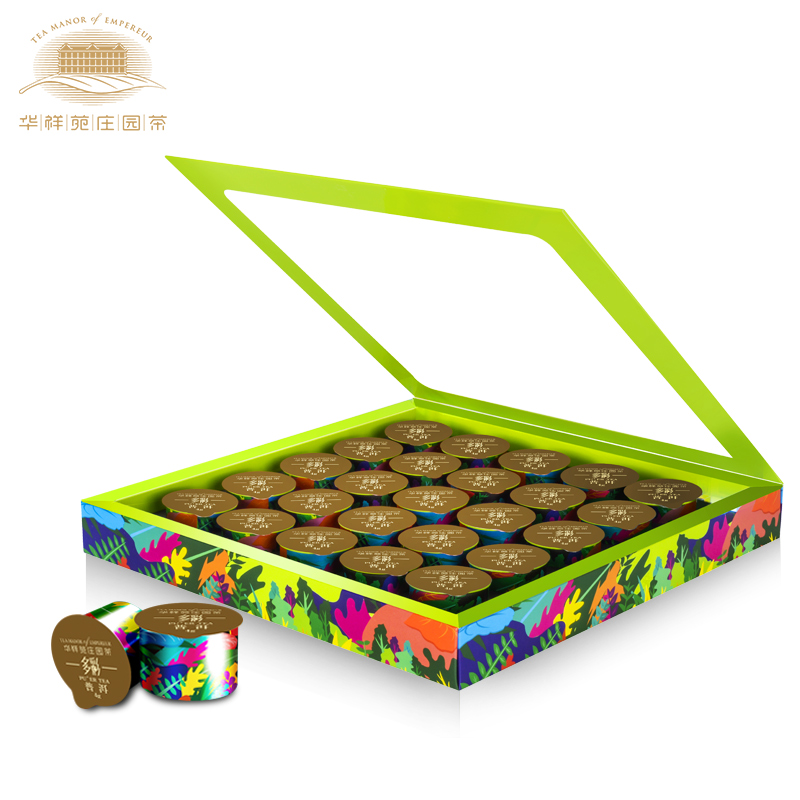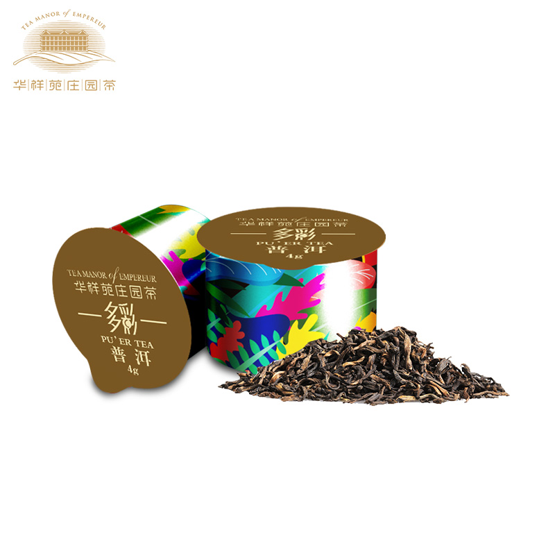 Huaxiangyuan Tea flagship store Menghai Puer ripe tea Puer loose tea capsules Portable packaging colorful gift box 100g