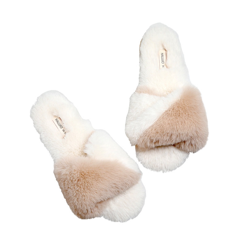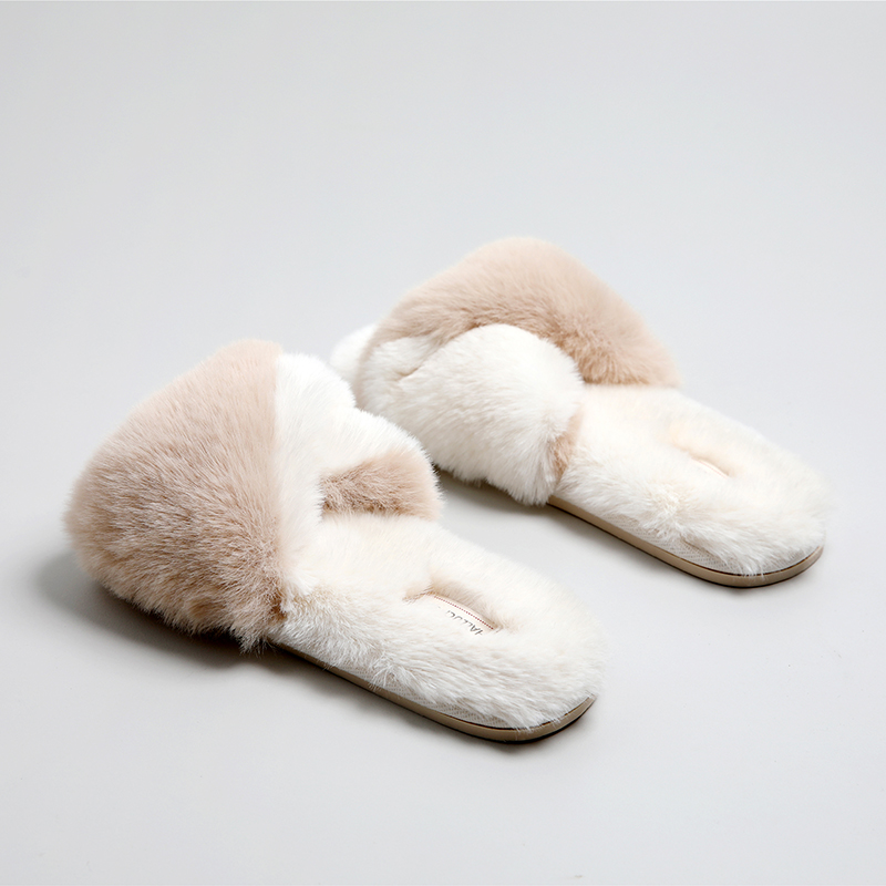 Autumn Winter New Pint Collared Small Rabbit Suede Fish Mouth Waterproof Non-slip Indoor slippers minimalist office Leisure slippers