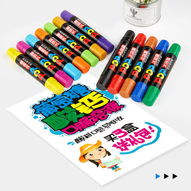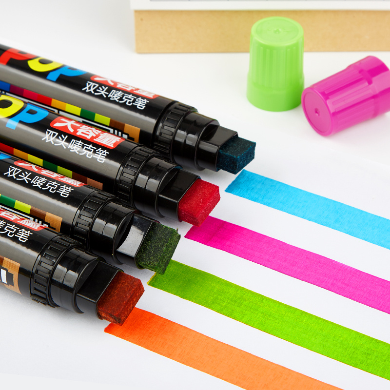 Sun POP Pen Double Head Advertising Pen Hand-painted Poster Pen Macpen Suit 10mm Oily Mark Pen Writing Color Painting Macpen Water Supplement 17mm Supermarket Drugstore Students Fine Art Special