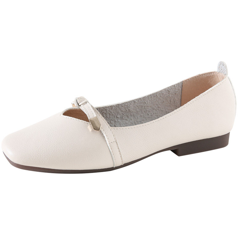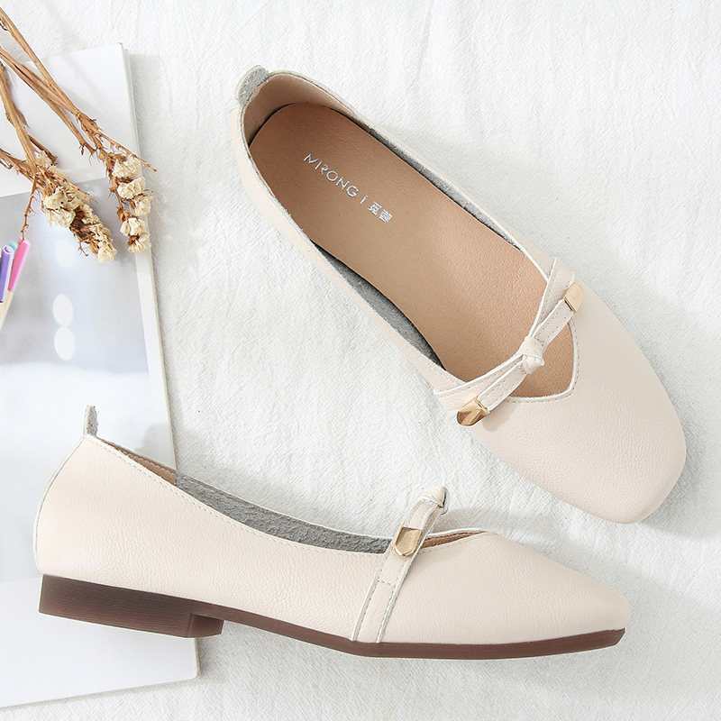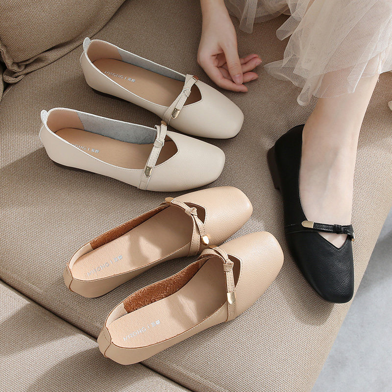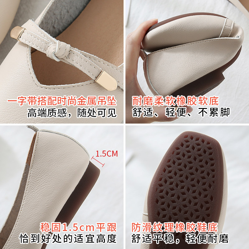Bean Bean Shoes Women 2022 New Summer Pregnant Women Soft Leather Flat Bottom Soft Bottom 100 Hitch Square Head Light Mouth Mary Precious Shoes