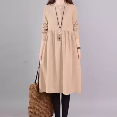 Pregnant women autumn dress long version over the knee 2021 new autumn loose dress Korean tide pregnant mother skirt