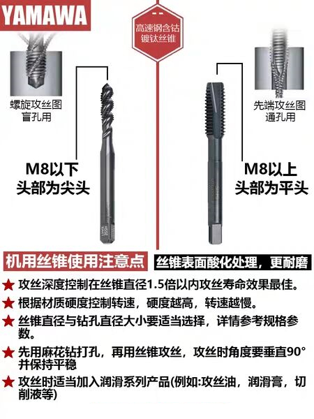 Original dress Japan YAMAWA cobalt-containing machine with first end screw tap M2M3M4M5M6M8M7M10 Mountain leaf plated Top 6G