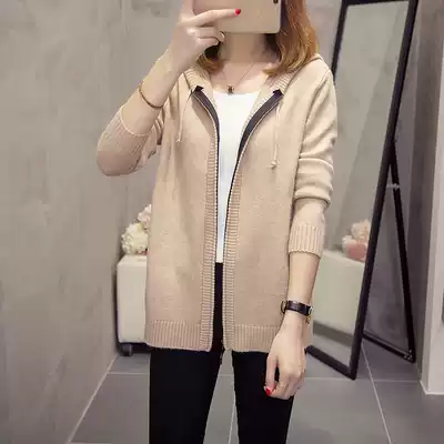 2021 spring and autumn new large size women's clothing 200 kg fat mm hooded knitwear thin cardigan jacket sweater female