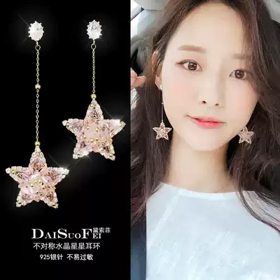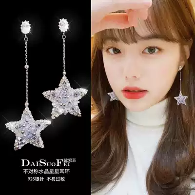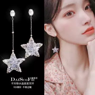 Star earrings 2021 New Tide long version of temperament female earrings round face sterling silver earrings thin net Red simple earrings
