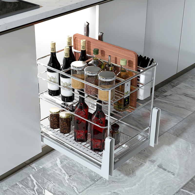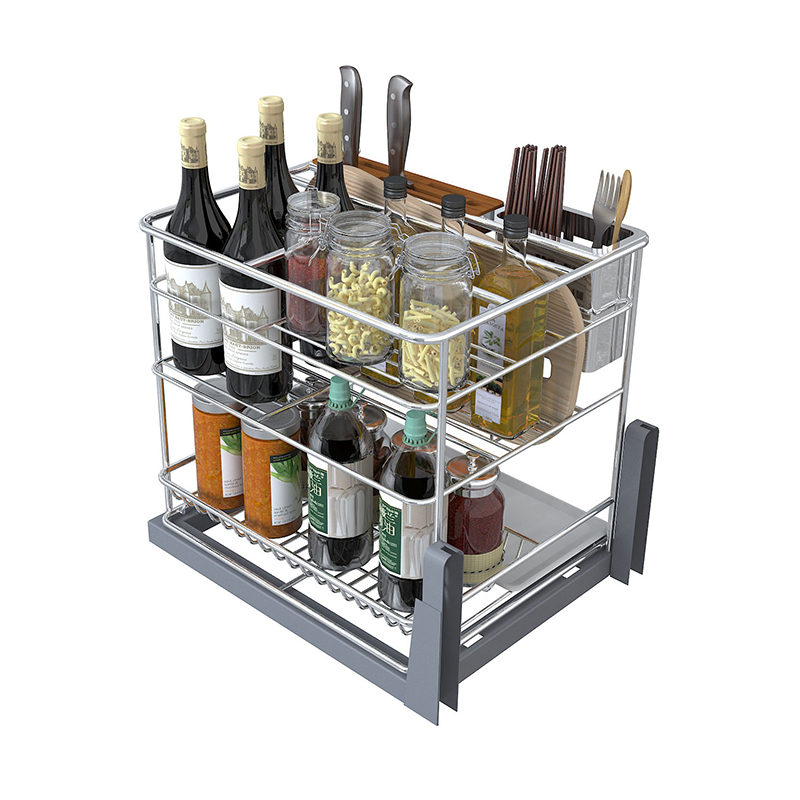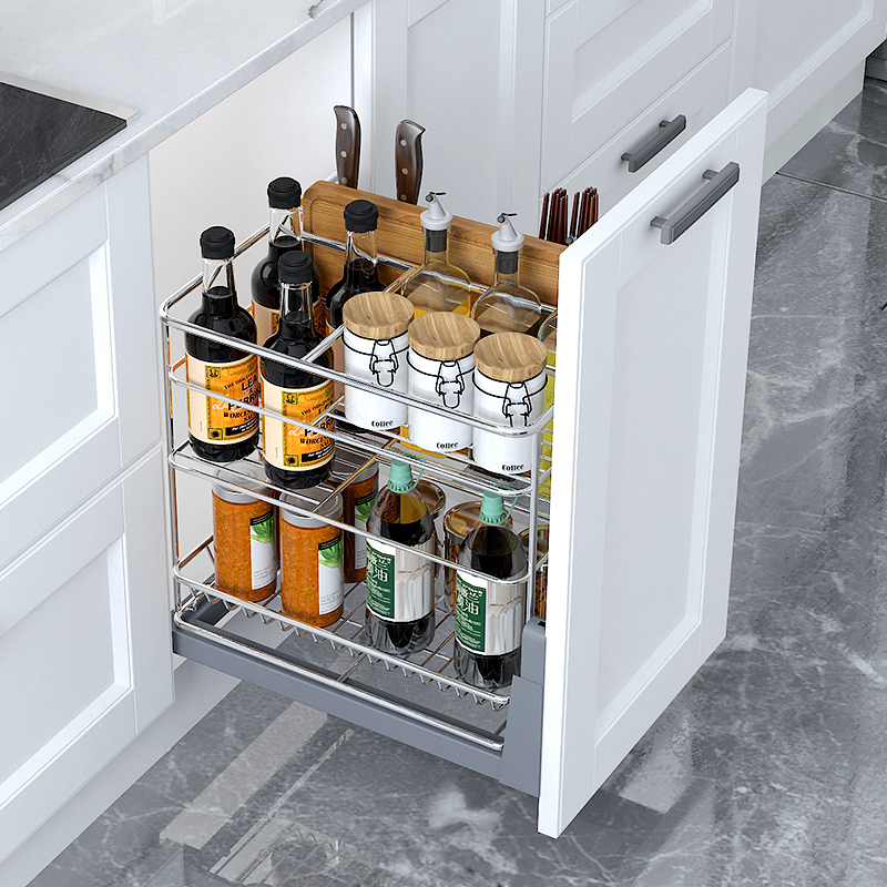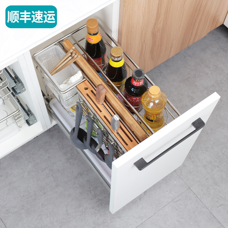 Kitchen cabinet seasoning basket stainless steel drawer type pull basket cushion shelf knife holder seasoning basket built-in
