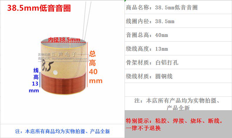 38 5mm Bas Sound Coil White Aluminum Drilling 2 layer Pure Copper 3 85cm Bass Speaker Maintenance Accessories