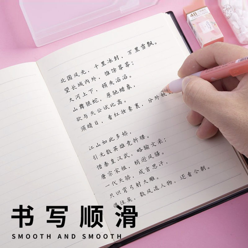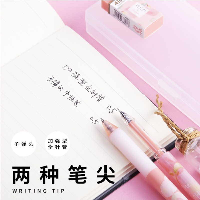 8 pieces of brilliance light stationery suit writing smooth medium pen black minimalist pencil case replacement refill less scraps eraser