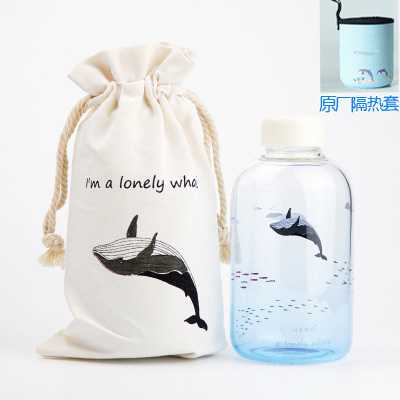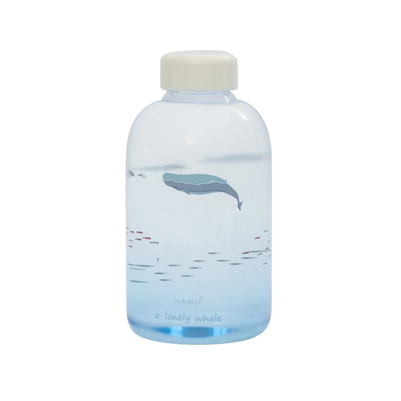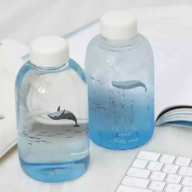 Large fin whale sperm whale glass bottle large-capacity marine life gradient blue water bottle accompanying cup divers around
