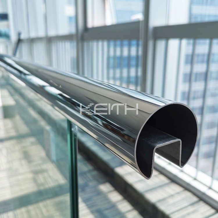 Hot sale stainless steel concave groove pipe single groove electroplating brushed round pipe square tube staircase balcony guardrail glass connection