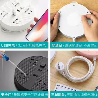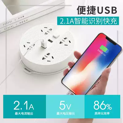 Plug row long cord plug board cute girl small socket with cable extension cord dormitory student artifact bed row plug