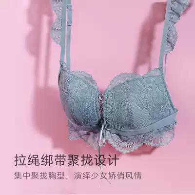 Miss Bobo Lace French pure underwear set women without steel ring small chest gather drawstring bra underwear