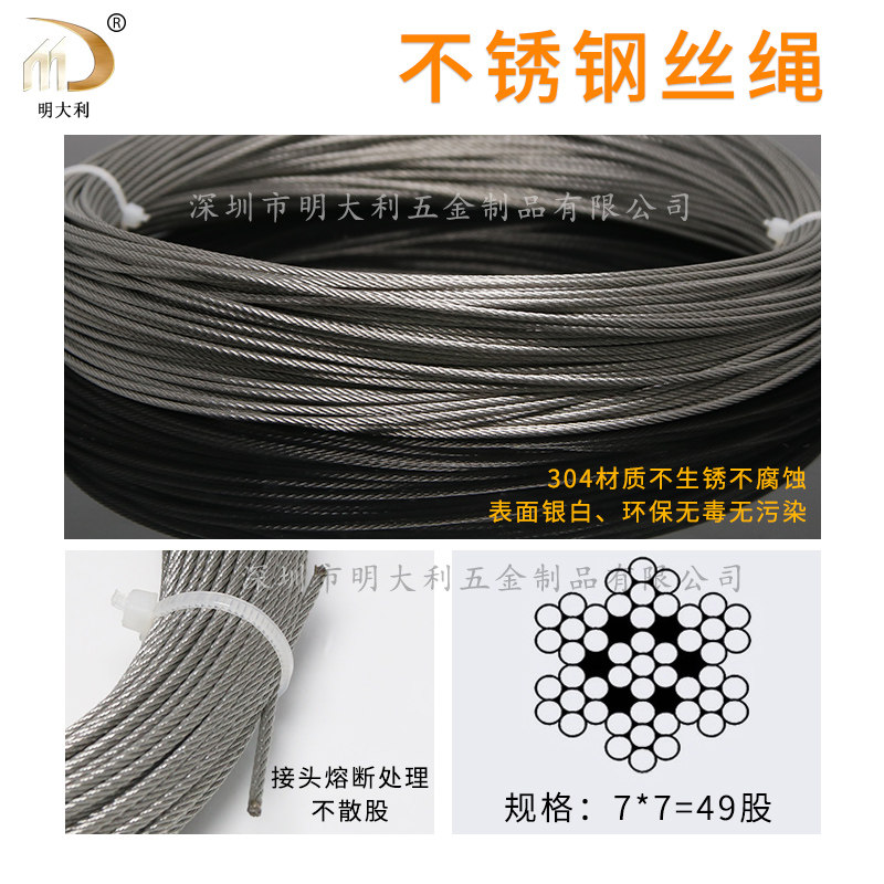 1 5mm304 wire rope tightrope 7 * 7 shares wether rope clothesline Shenzhen spot 10 m 50 m 100 m