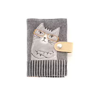 Export to Japan 19-year Autumn New embroidered glasses cat half-fold wallet card case card bag