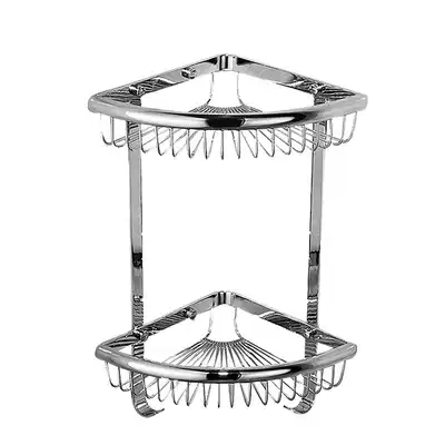 Thickened all-copper bathroom corner rack powder room shelf Double-layer wall-mounted perforated triangle basket shower room storage shelf
