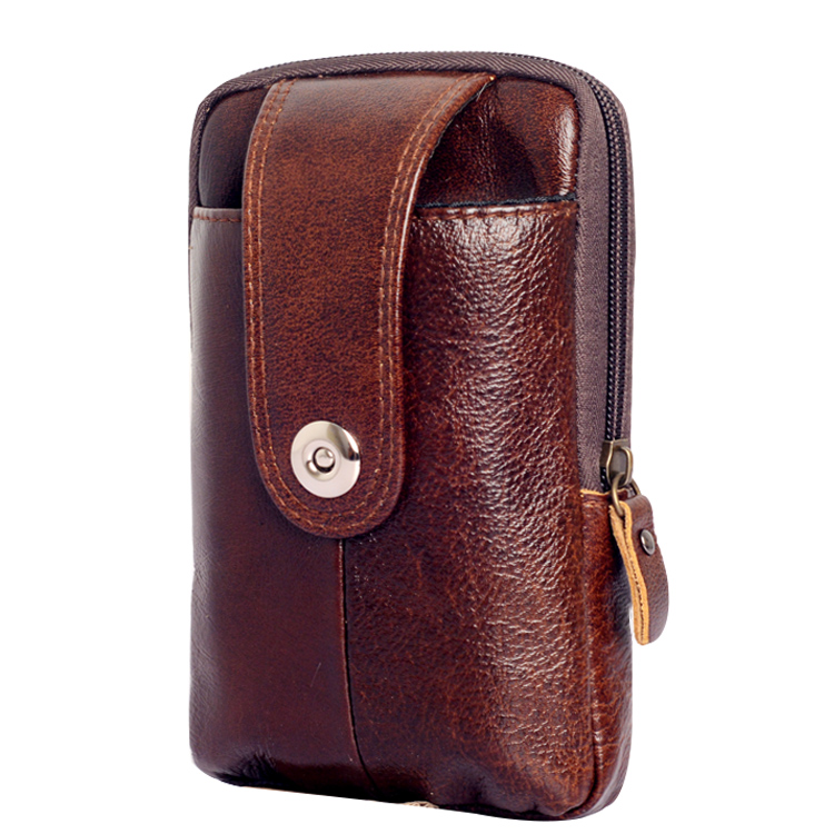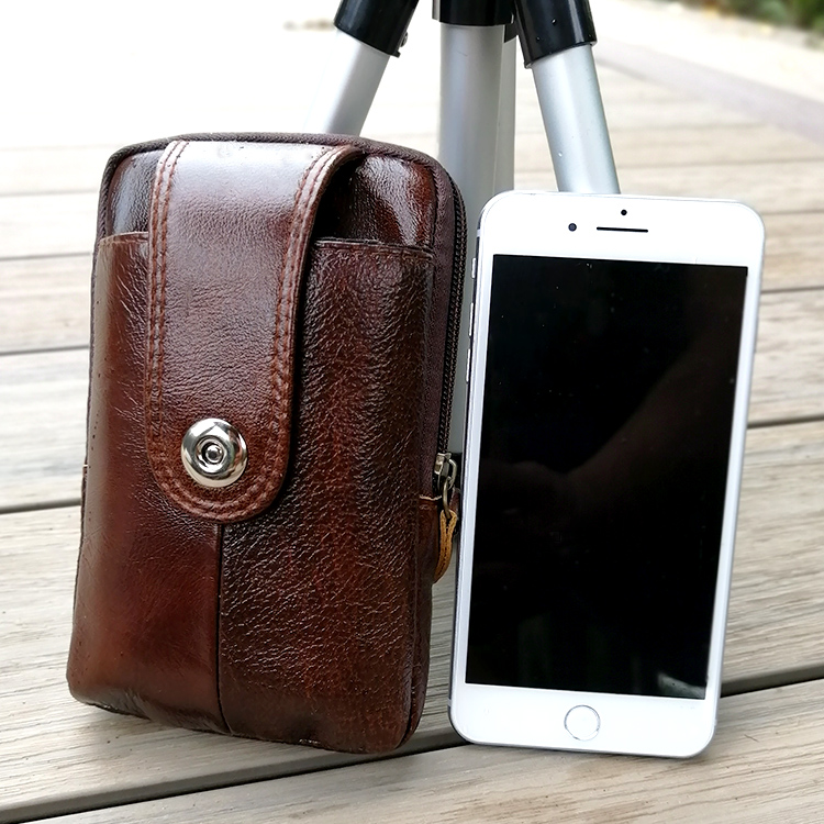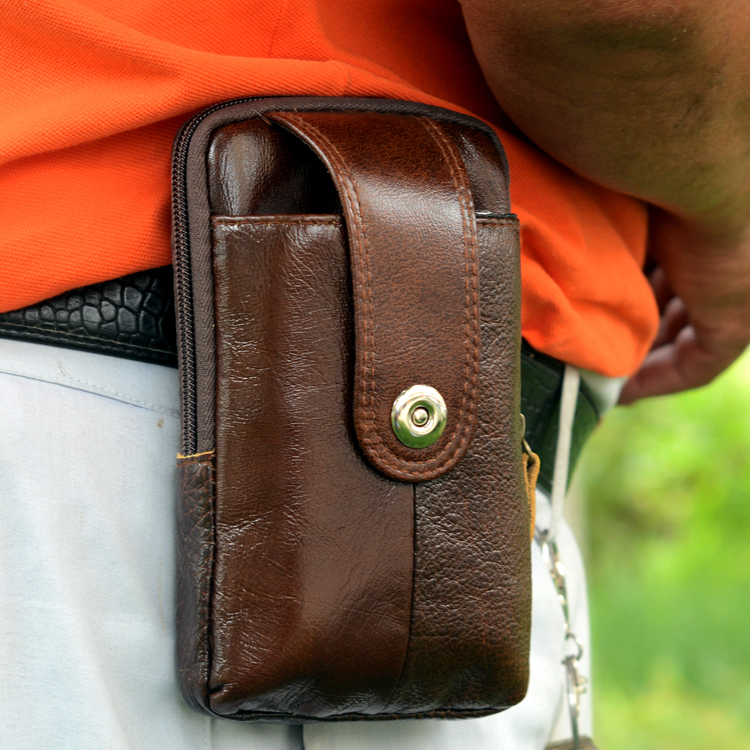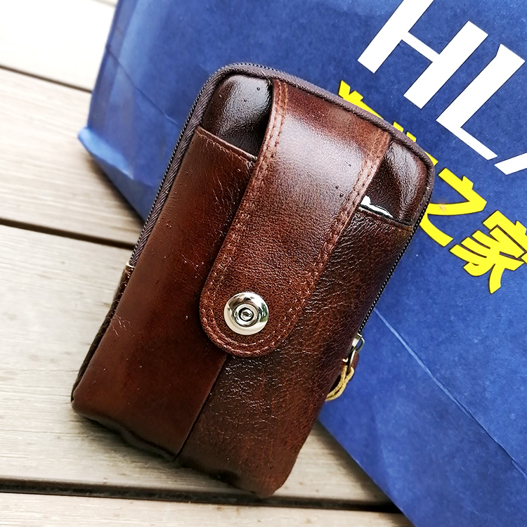Summer mobile phone bag Male genuine leather 7 inch Vertical men's work site wearing leather strap Leather Bag Key Bag