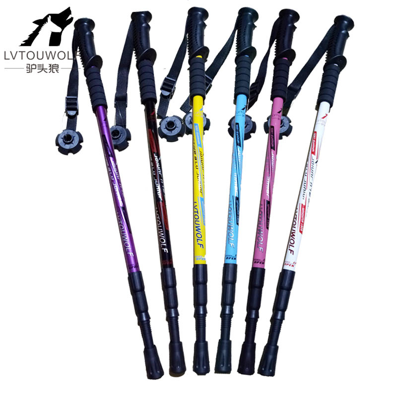 Donkey head wolf outdoor trekking stick telescopic walking stick multi-function 3-section straight handle men and women folding ultra-light old man's stick