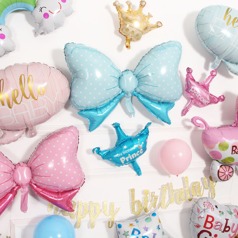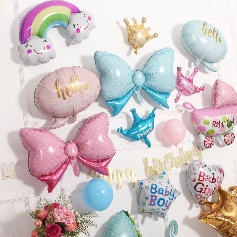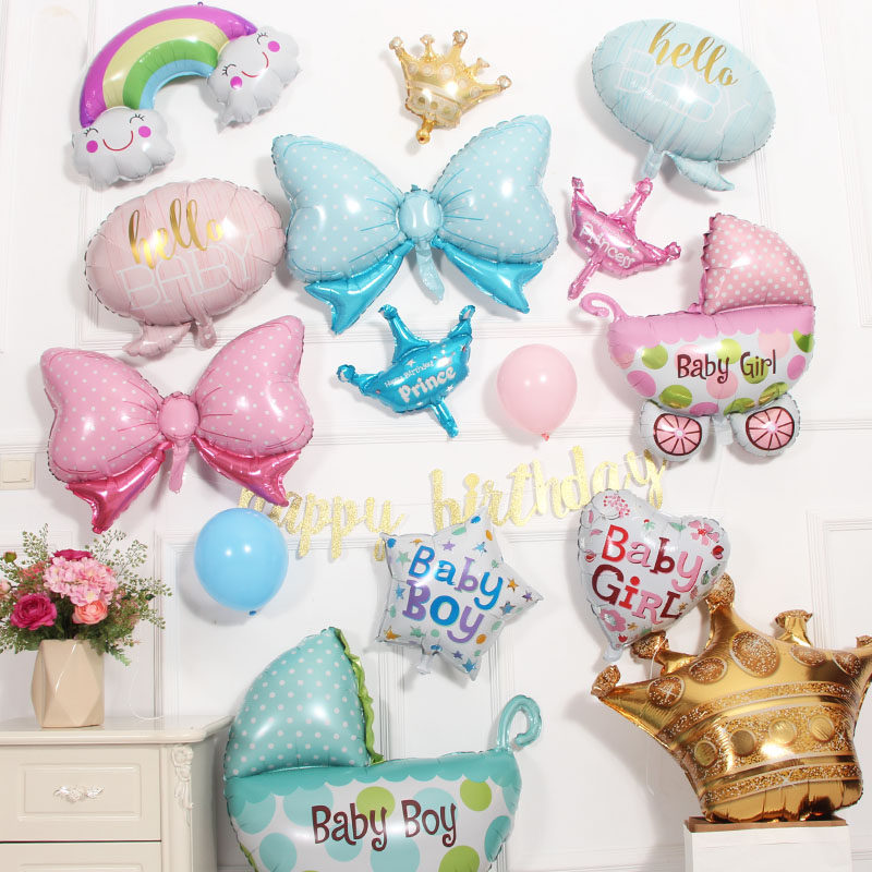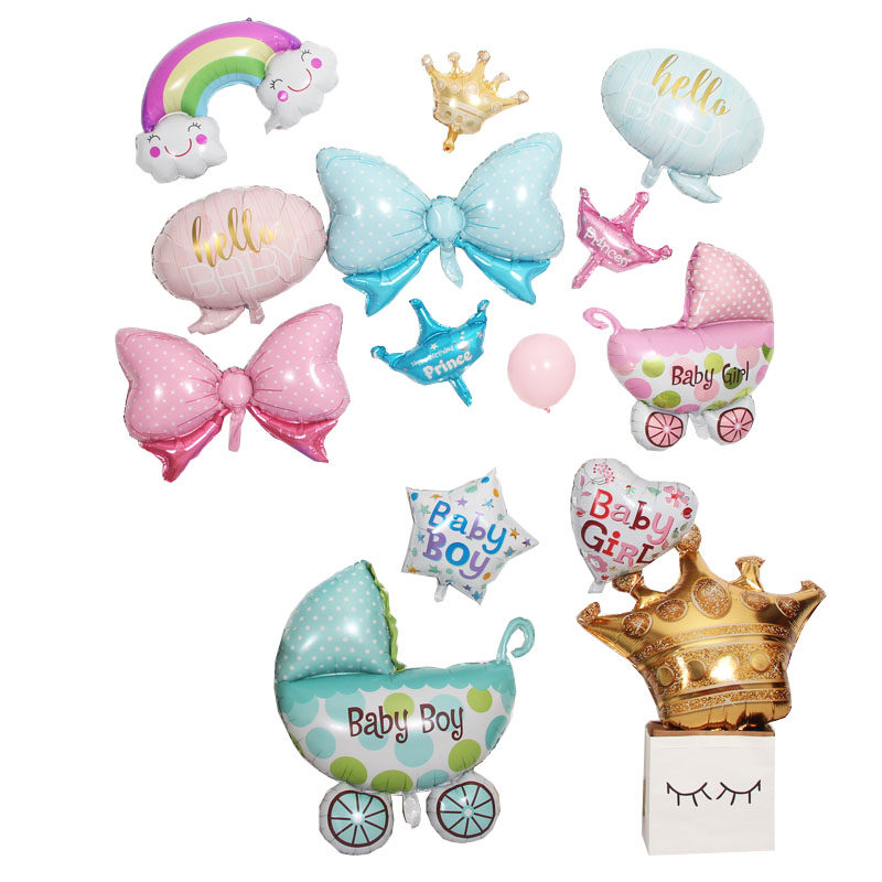 Big number stroller baby boy-balloon 1 baby girl balloon 1 mid-size crown 1 blue butterfly knot 1 pink bow tie 1 hello babypowder