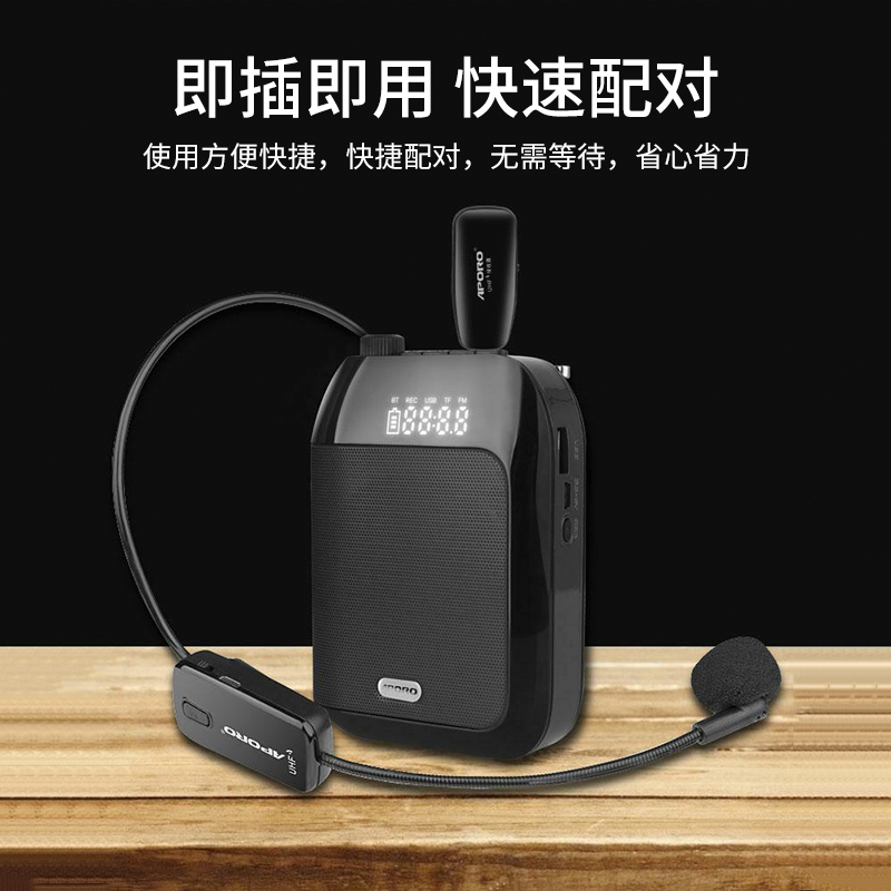 APORO uhf wireless microphone one drag two headset microphone performance head-mounted bee lecture teaching