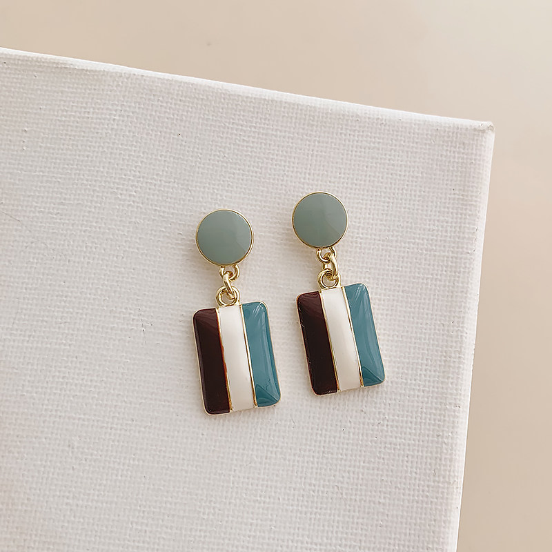 Summer style green earrings senior feel light and luxurious 2021 New Tide round face Slim Ear Pendant Women's Ear Pendant