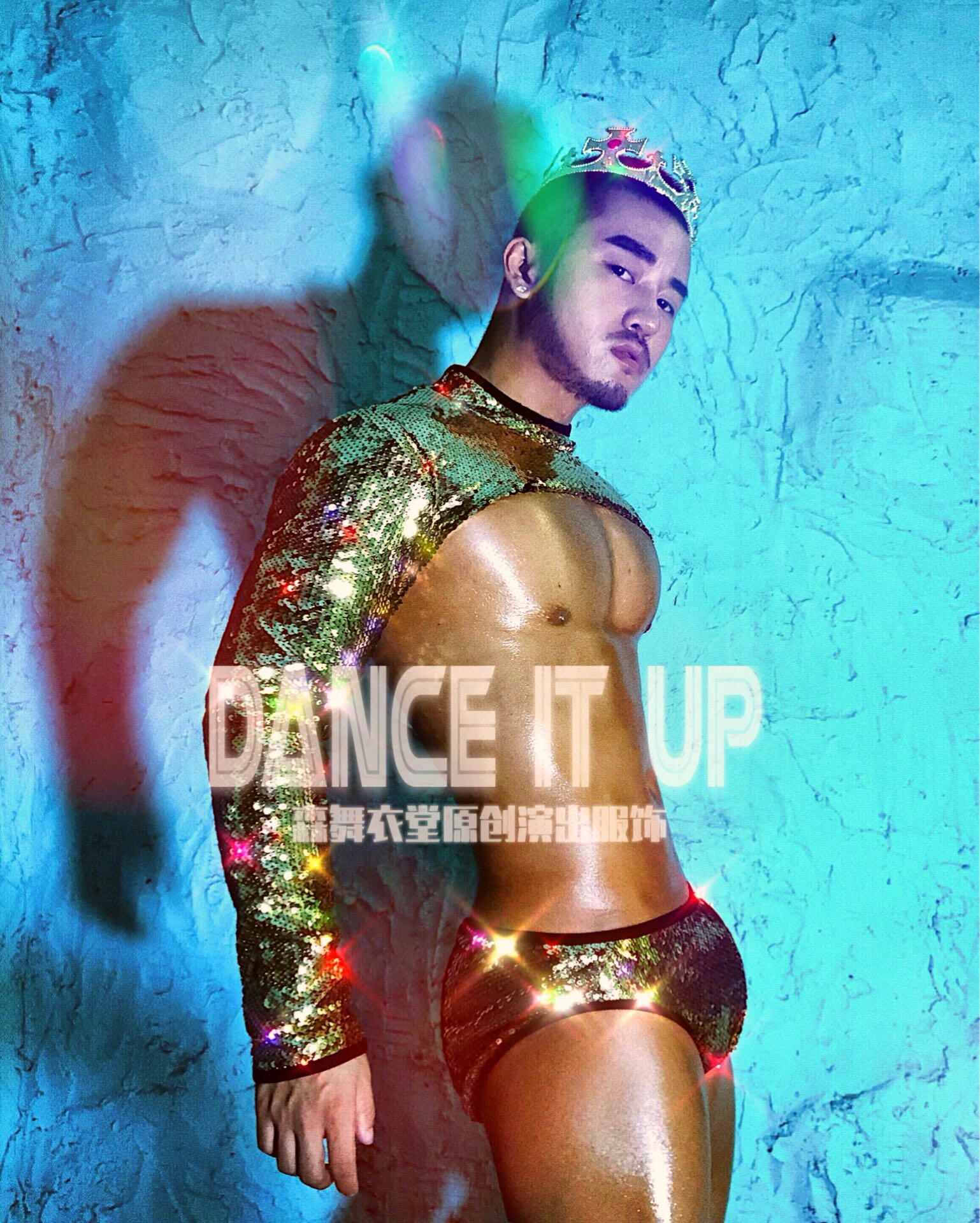 Night Bar male DS Gogo colorful golden Wang sexy party big party, half - section show suit W - party splash water festival
