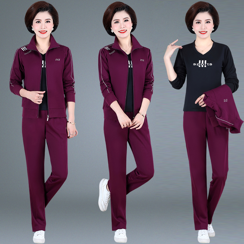Mother spring coat 2021 new middle-aged women's large size casual wear middle-aged sports suit women spring and autumn