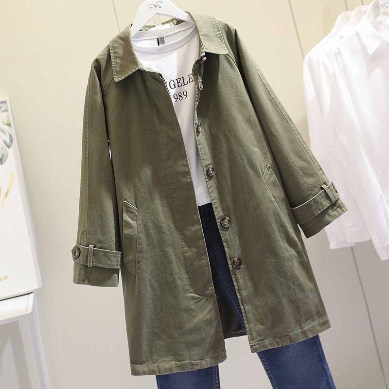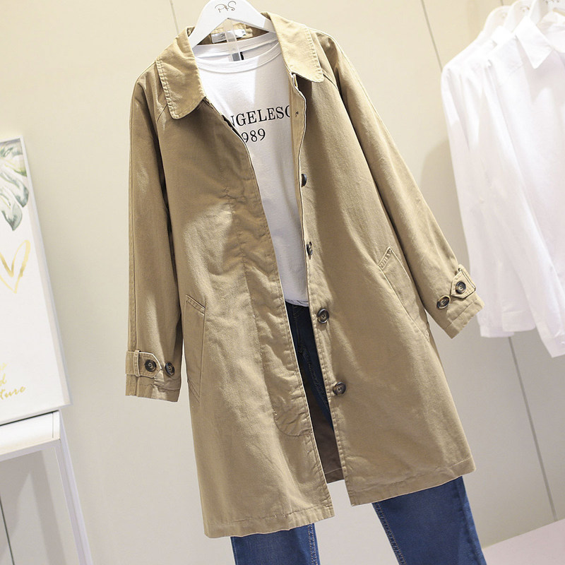 Windbreaker women's long version of the 2021 autumn new Korean version loose Sen women solid color small popular coat coat woman