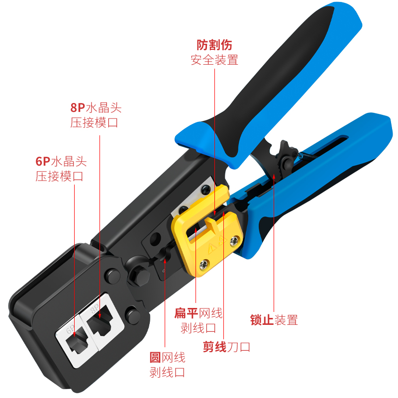 CNCOB Professional Grade 56 Perforated Crystal Head Multifunctional Mesh Clamp Home Network Through Hole Crimping Tool