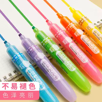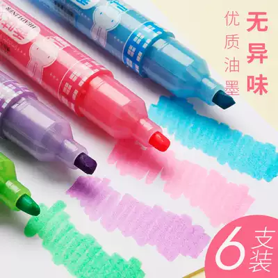 Morning light fluorescent pen single head wide marker pen multi-color students with light color candy yellow red green color large capacity children rough stroke Key Light Marker Pen Waterproof 6 fragrance set