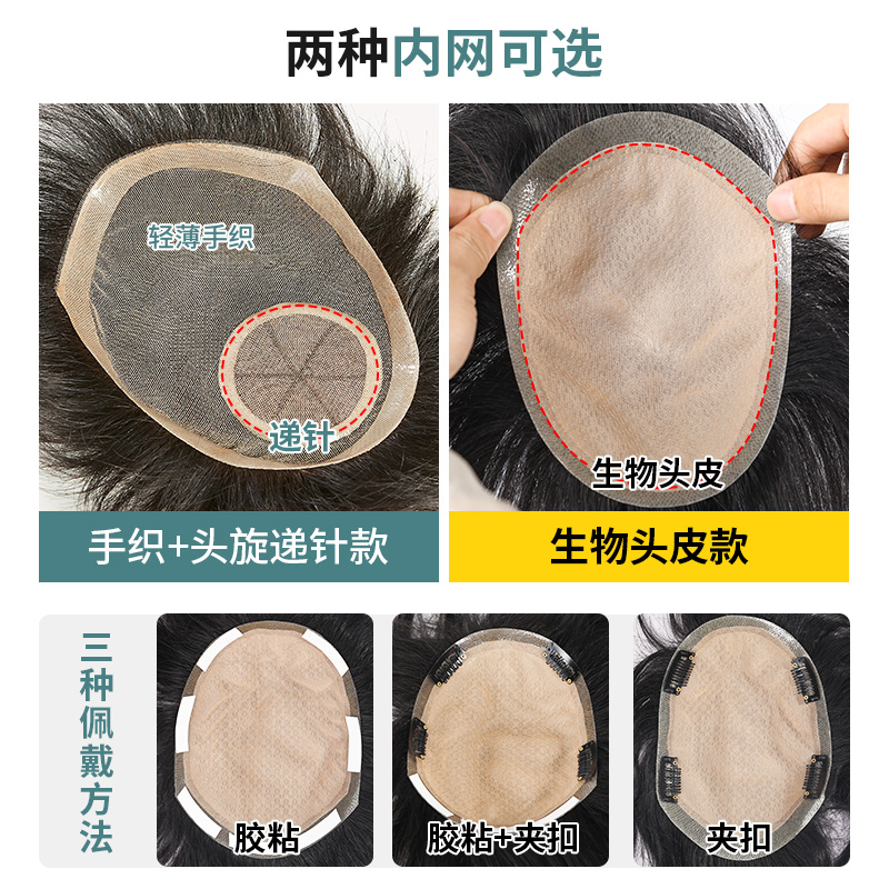 When placing an order, you need to note whether you want a clip or an adhesive style on the intranet. Natural style (fine-cut hairstyle) hand-knitted 13*18 hand-knitted short hair style (fine-cut hairstyle) hand-knitted 13*18 back