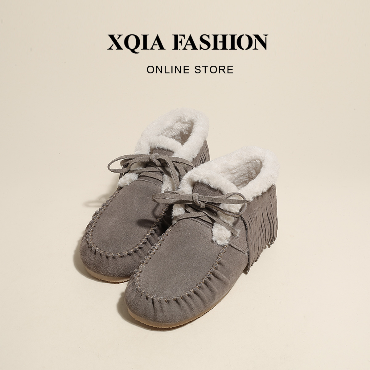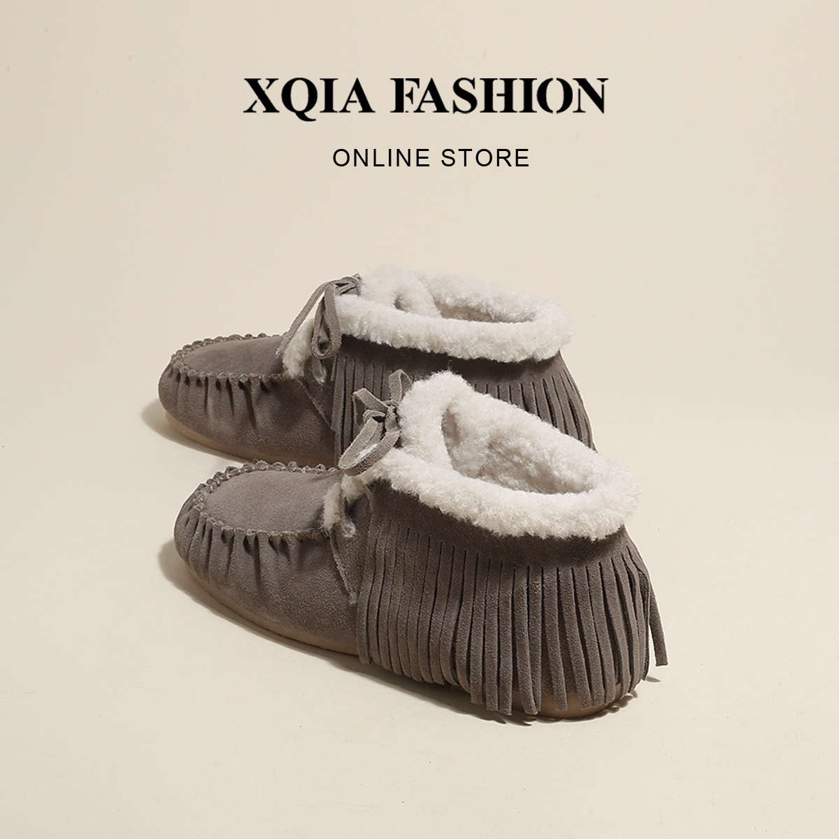 Birken shoes leather bean shoes women's 2021 winter plus velvet Joker new women's shoes square head tassel retro snow boots