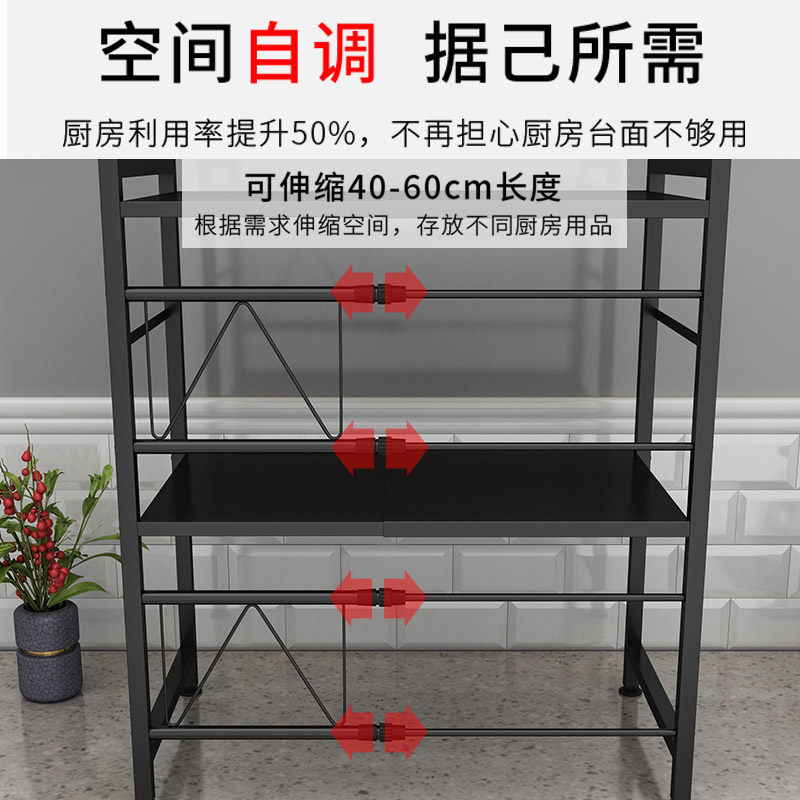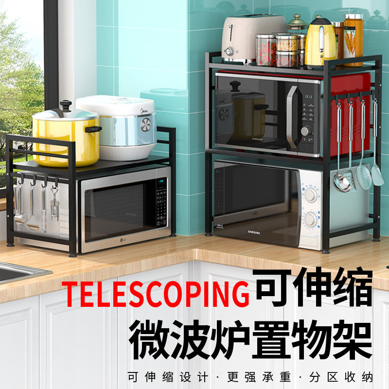 Telescopic kitchen shelving microwave rack oven rack for home floor 2 layers of electric rice cooker storage containing double layer