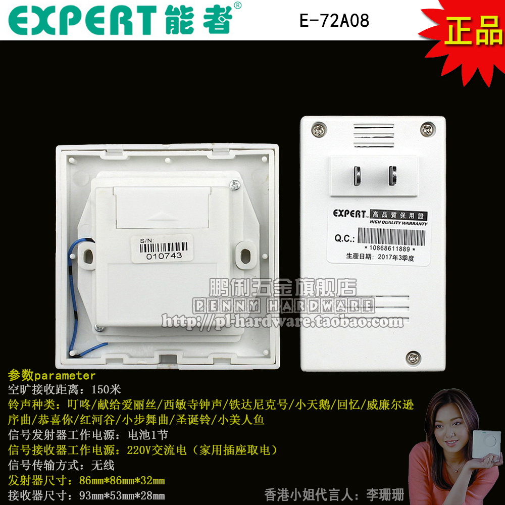 EXPERT ENERGY E-72A08 WIRELESS COMMUNICATION DOORBELL COMMEMORATIVE EDITION 12 FIRST AND STRING BELL VOLUME ADJUSTABLE