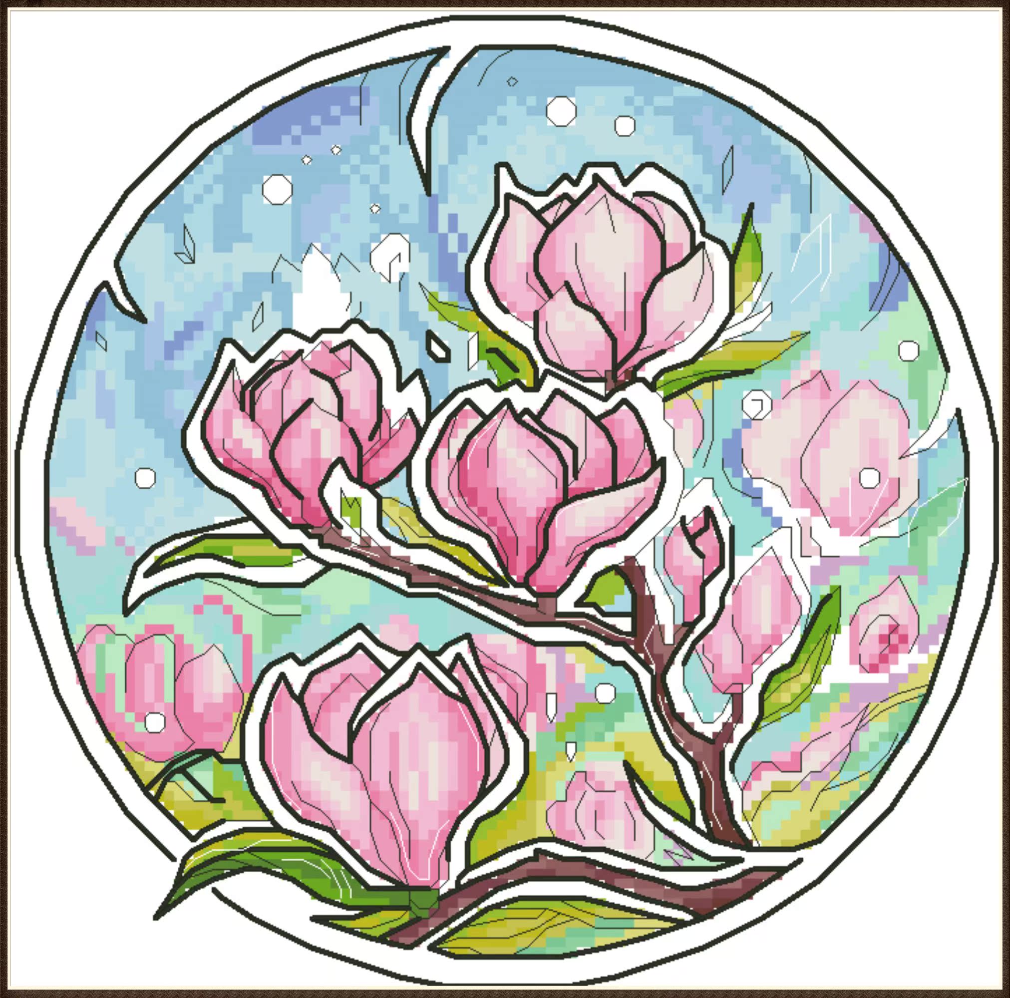 Circular Flowers - Magnolia Cross Embroidery Paper 3 Page 128G Color Paper Printing