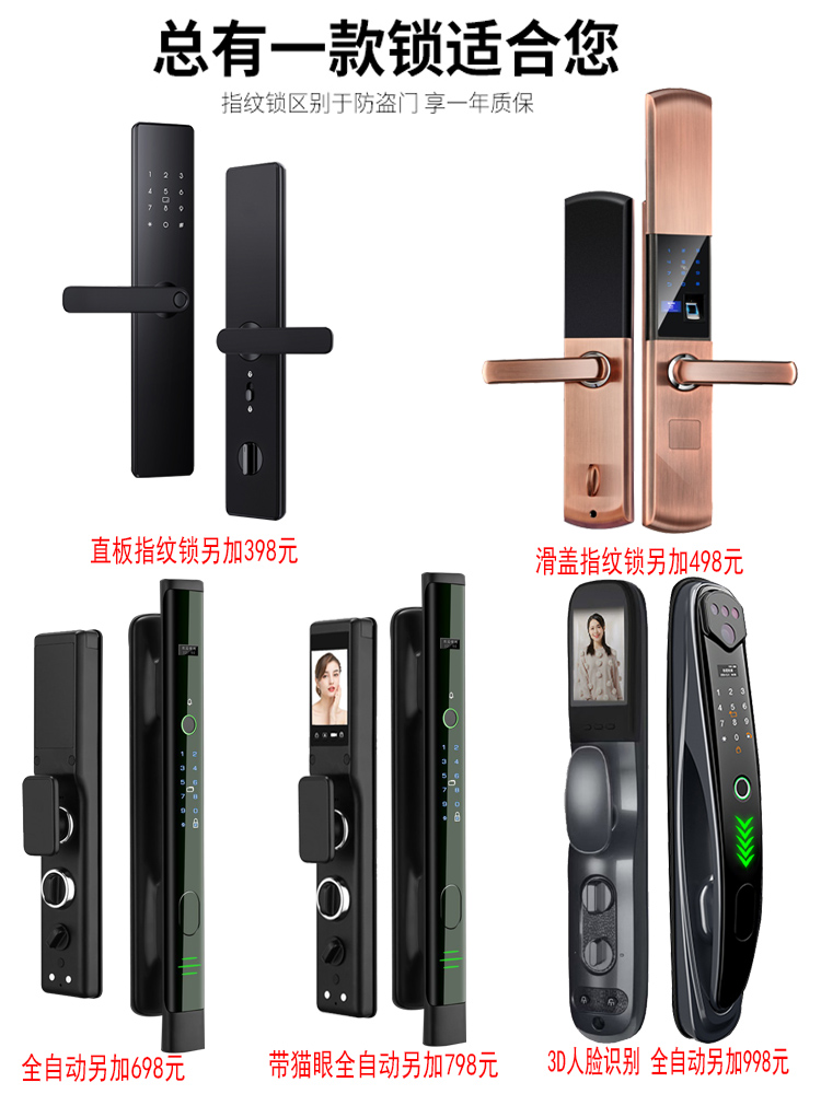A section 1970*860A 1970*960A 2050*860A 2050*960A 2050*860A 2050*960A 2050*1180B 1970*860B 1970*960B 2050*860B 2050*960B 2150*860B 2150*960B 2050*1050B 2050*1180B 2150* 1180205*86205*96 straight board fingerprint lock plus 398 slide fingerprint lock plus 498 automatic fingerprint lock plus 598 face recognition automatic lock plus 1288