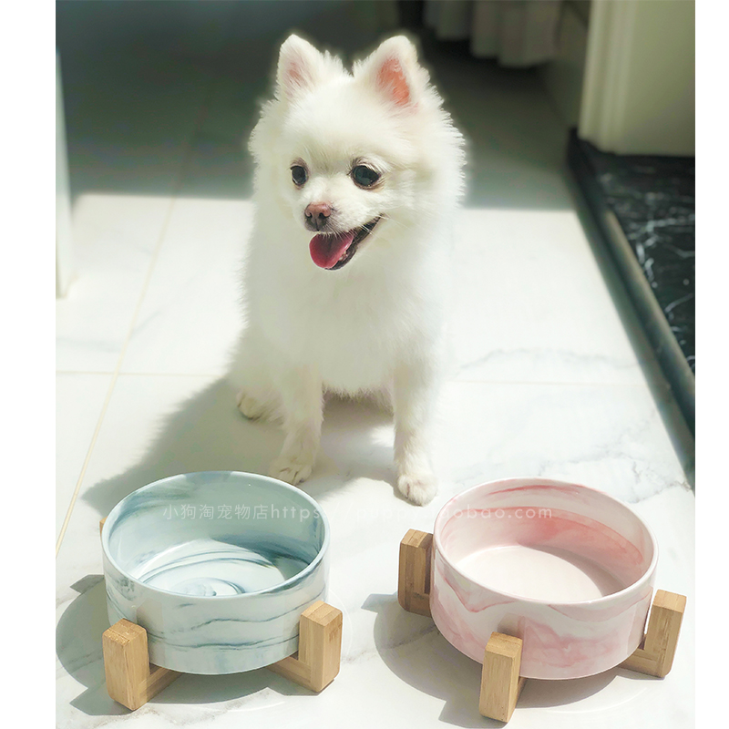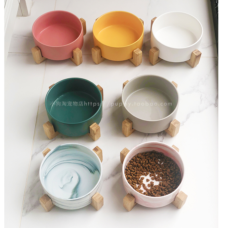 ins pet ceramic bowls small canine rice bowls cat food rice bowls teddy water basin dogs wood frame bowls