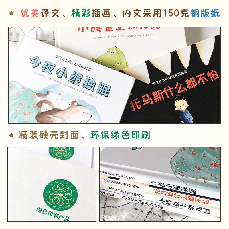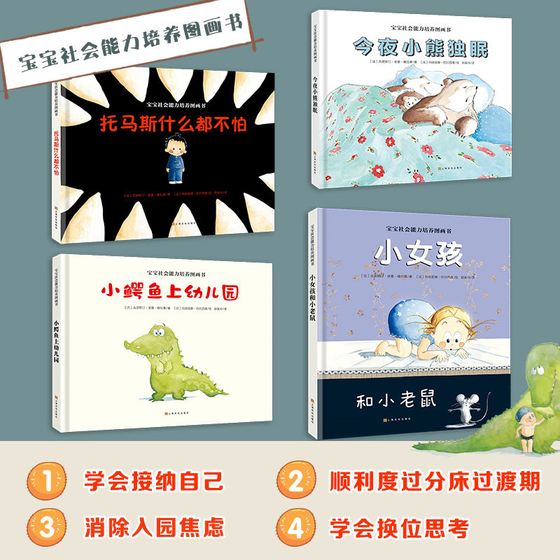 (Hardcover 4 volumes) Baby social ability training children's picture book story book Little crocodile going to kindergarten 2-3-6 years old kindergarten baby picture book foreign award-winning classic children's book