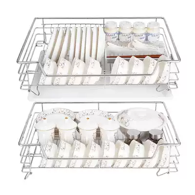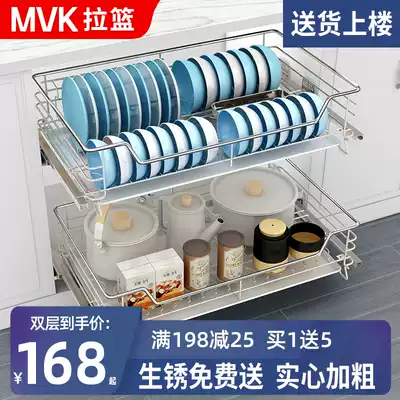 Pull basket kitchen whole cabinet double buffer drawer type 304 stainless steel dish basket seasoning pull basket built-in large capacity