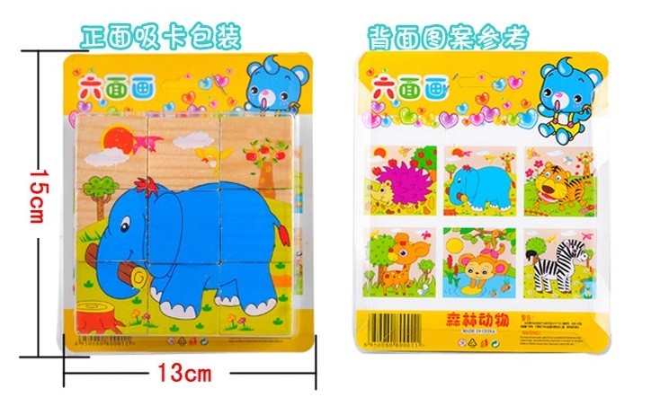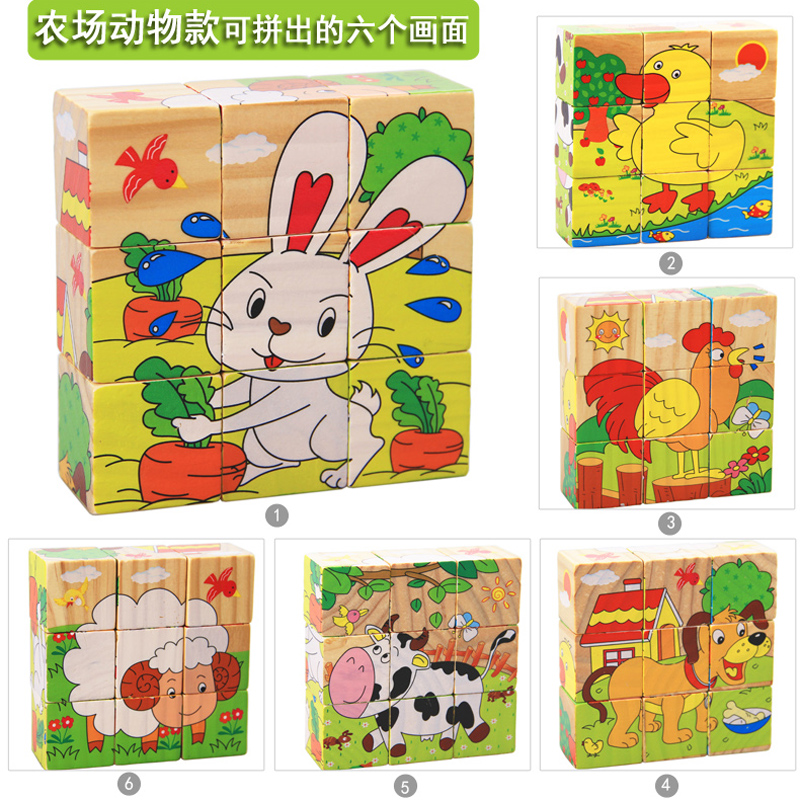 Children's Six Piece Puzzle 3D Stereo Wooden 1-2-3-4 Years Baby Kindergarten Early Learning Intelligence Toy