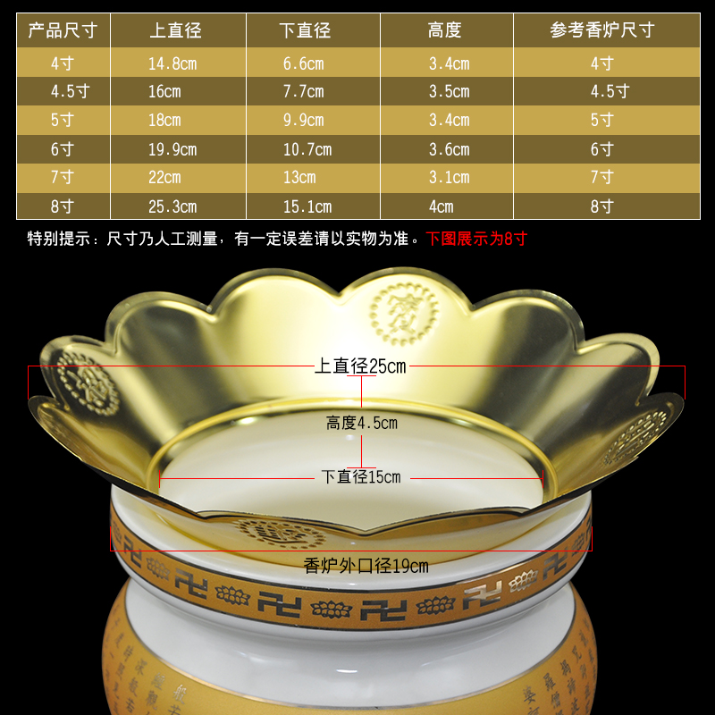 4-inch one (suitable for 4-inch incense stove) 4 5 inch one (suitable for 4 5-inch incense stove) 5-inch one (suitable for 5 6-inch incense stove) 6-inch one (suitable for 6 7-inch incense burner)