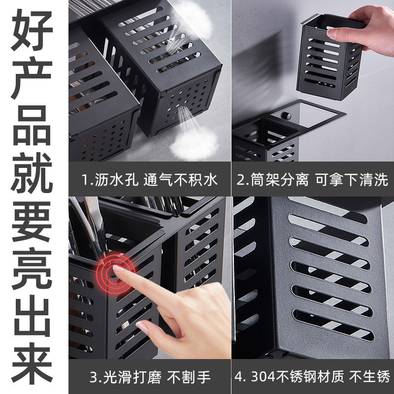 304 Stainless Steel Chopstick Cylinder Wall-mounted Wall-Free Fast Cage Home Containing Bucket Drain Rack Kitchen Chopsticks Basket-Taobao