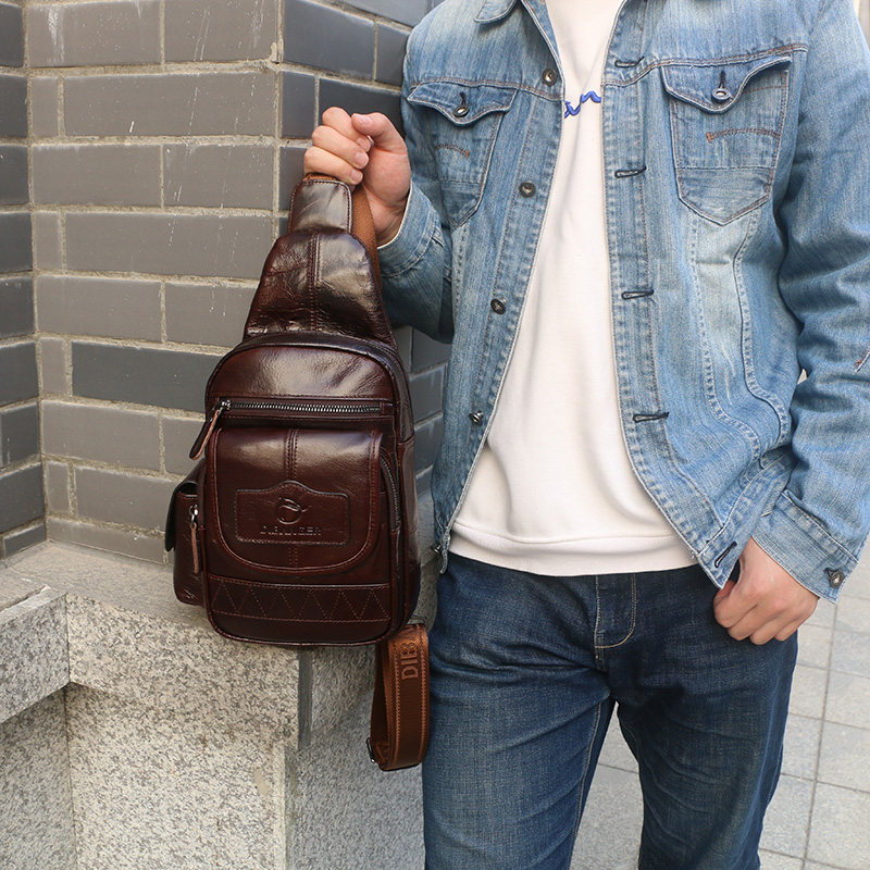 Men's bag bag leather bag bag leather bag male head skin large single shoulder bag bag chest inclined carrybag