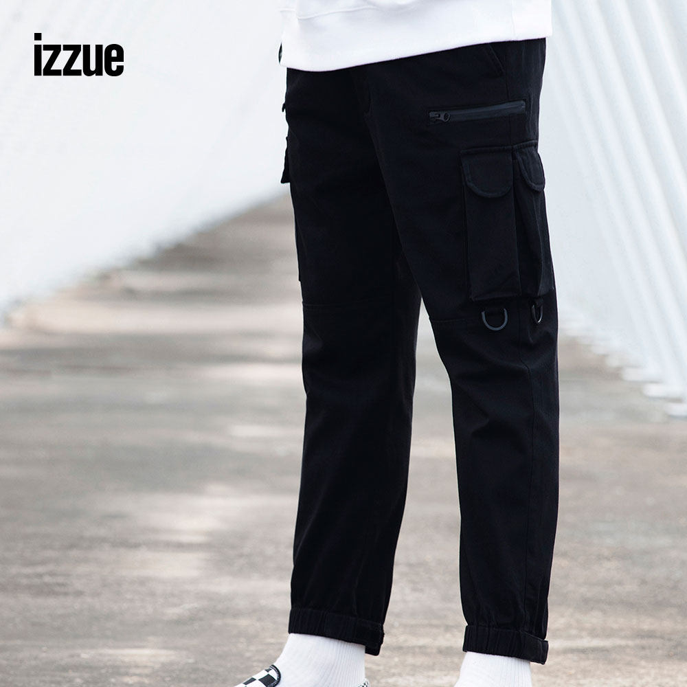 izzue men's casual multi-pocket tooling nine-point pants autumn trend personality bundle feet 6119F9D