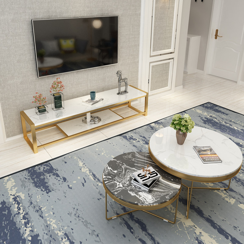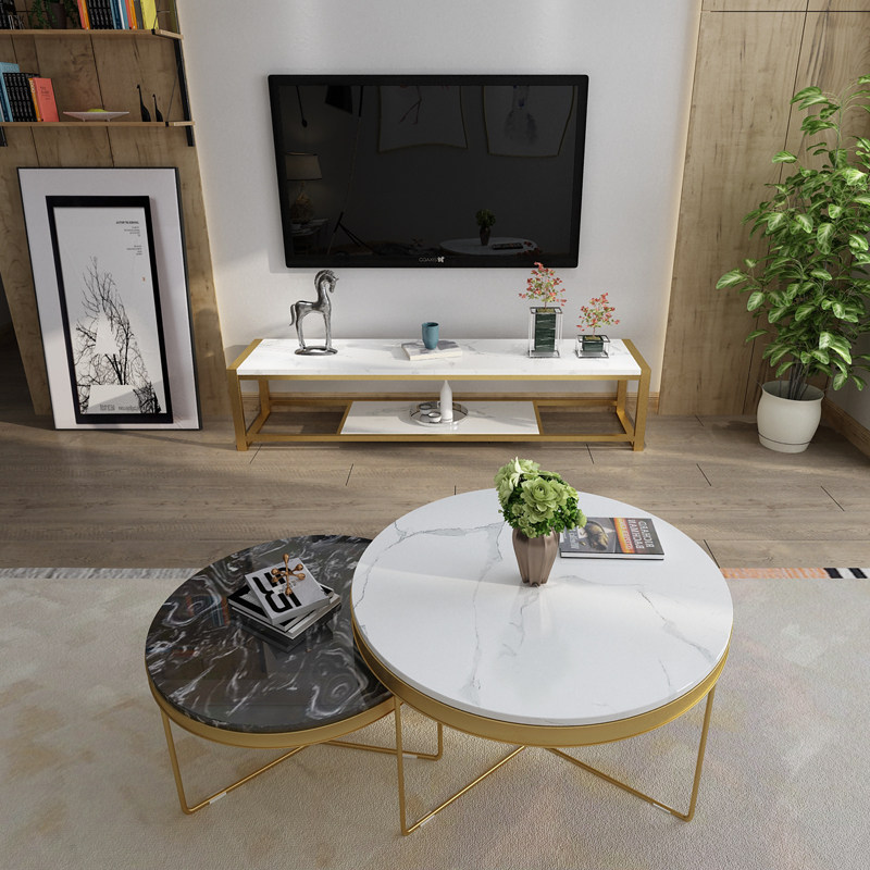 Nordic light luxury marble TV cabinet coffee table combination living room wrought iron bedroom small apartment postmodern minimalist